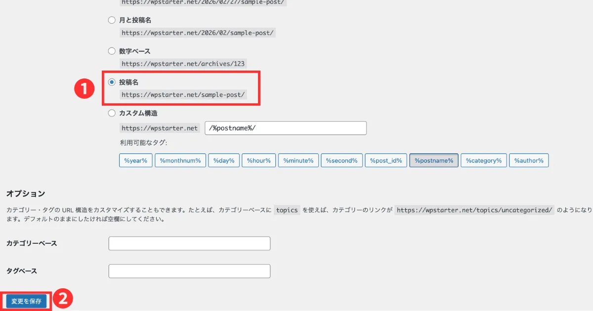 | 日付と投稿名 | https://wpstarter.net/2024/06/01/sample/ |